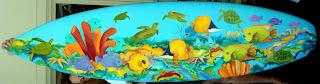 The surfboard donated by Island Native & painted by my fabulous mother, beth that was raffled off at the fundraiser!!